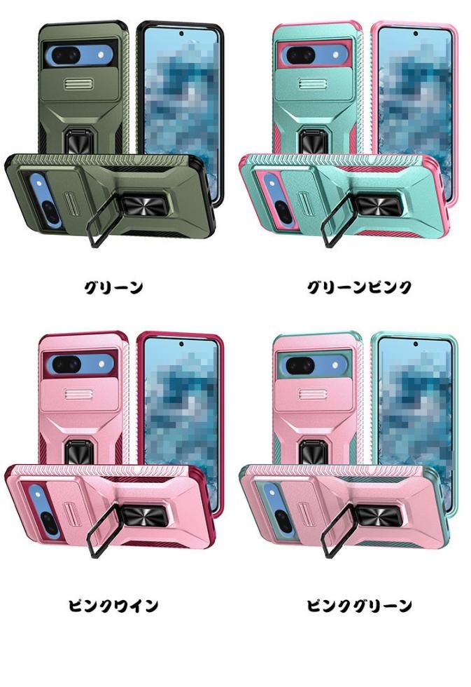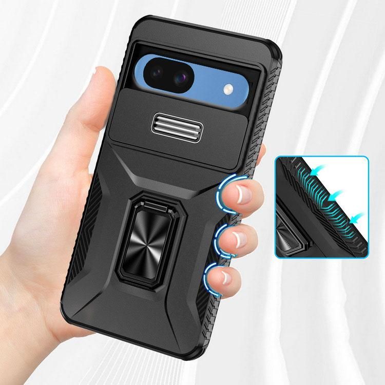 Pixel9 ケース 耐衝撃 Pixel9 Pro 耐衝撃ケース 一体型リング付き マグネット式車載ホルダー対応 スライド式カメラレンズカバー付き カメラ保護 スタンド機能 2重構造