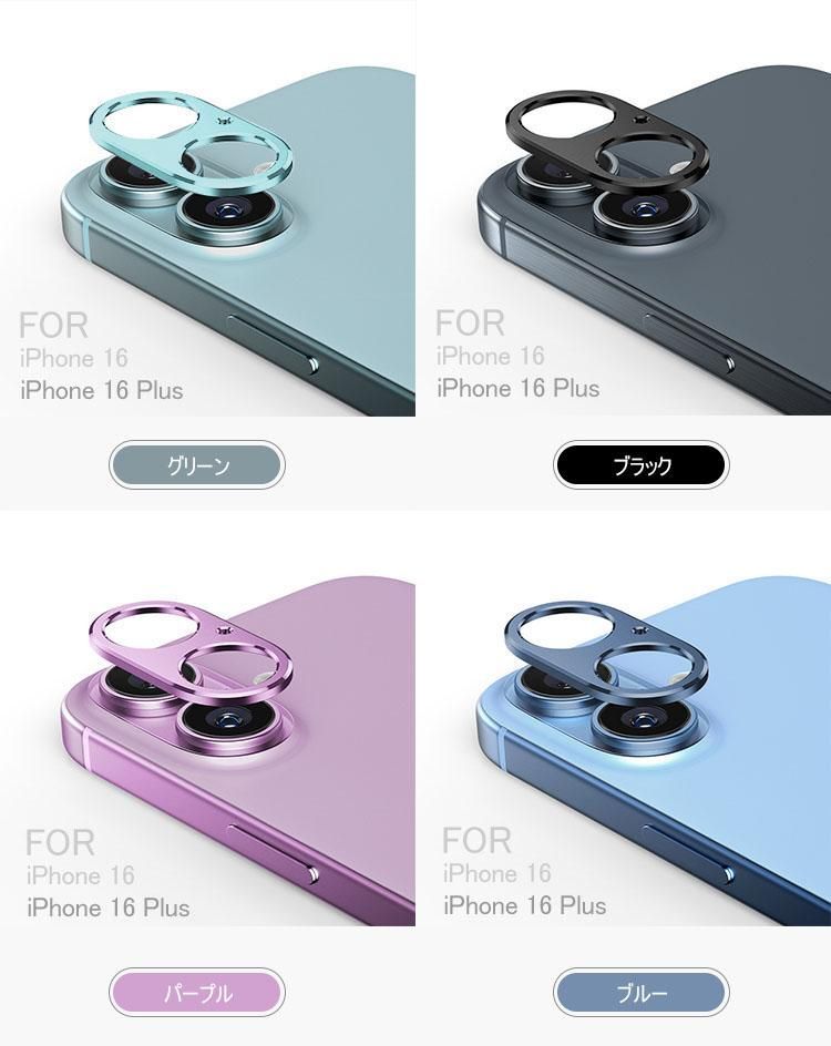 iPhone16 カメラカバー アルミ 16 Plus/16 Pro/16 Pro Max レンズ保護カバー 金属性 強化ガラス付き レンズカバー