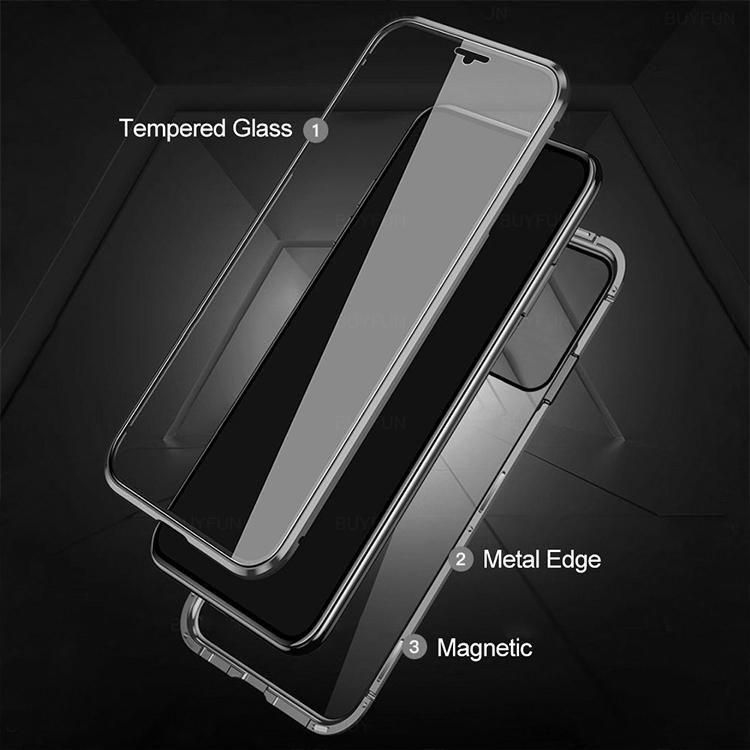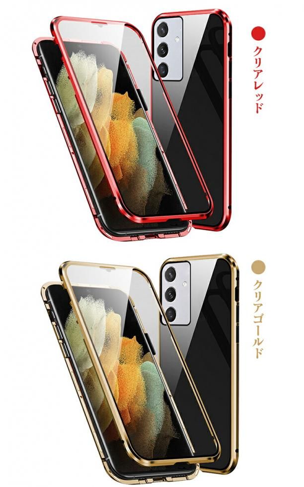 Galaxy S24FE ケース 耐衝撃 カバー アルミ バンパー かっこいい アルミバンパー クリア 透明 両前後強化ガラス マグネット式装着 保護ケース