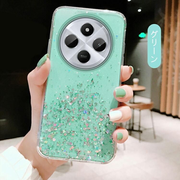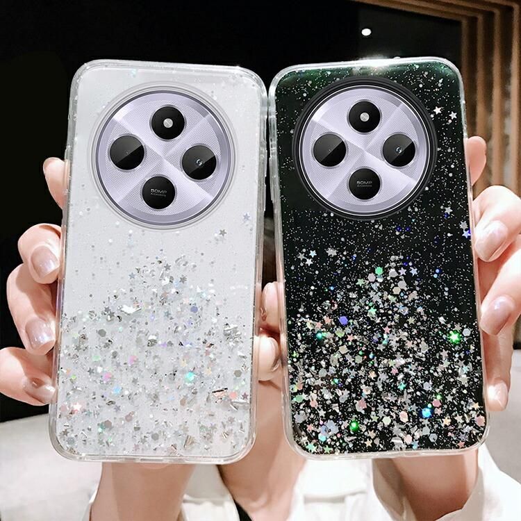 Redmi 14C クリア ケース 耐衝撃 カバー クリア 透明 TPU ソフト ケース きらきら かわいい グリッター ストラップ穴 可愛い
