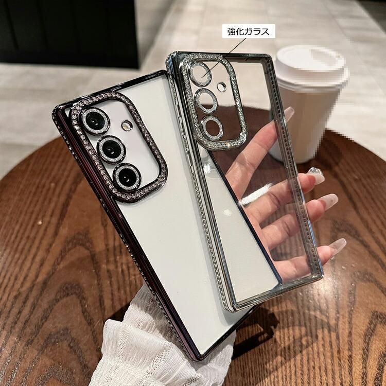 Galaxy S24FE ケース カメラ保護あり カバークリア 背面透明 ラインストーン メッキ TPU ソフトケース シンプル 可愛い お洒落 かわいい