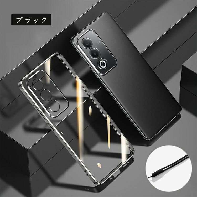 OPPO A3 5G ケース クリア カバー カメラ保護あり クリア 透明 ストラップ付き メッキ TPU ソフトケース ストラップホール付き 可愛い お洒落