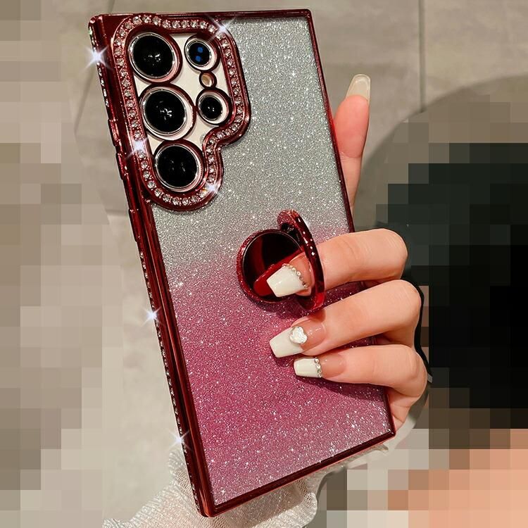 Galaxy S25 ケース カメラ保護あり カバー ラインストーン メッキ TPU ソフトケース 分離型スマホリング付き スタンド機能