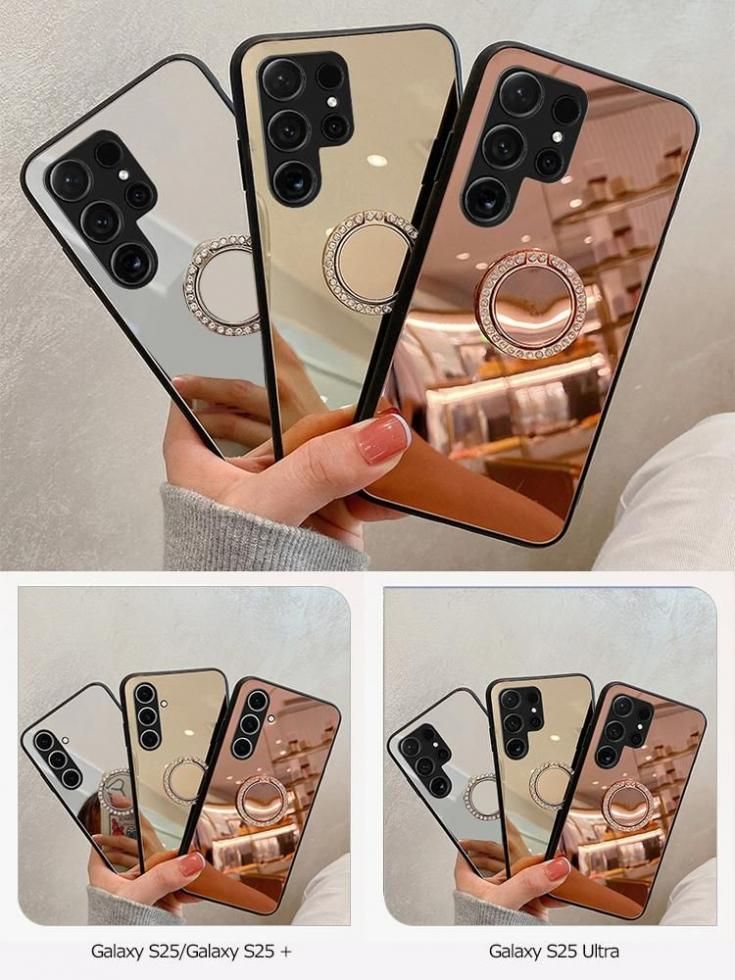 Galaxy S25 ケース クリア S25+/S25 Ultra カバー背面ミラー 鏡面 ケース/カバー ストラップ穴 スタンド機能 後付け リング付