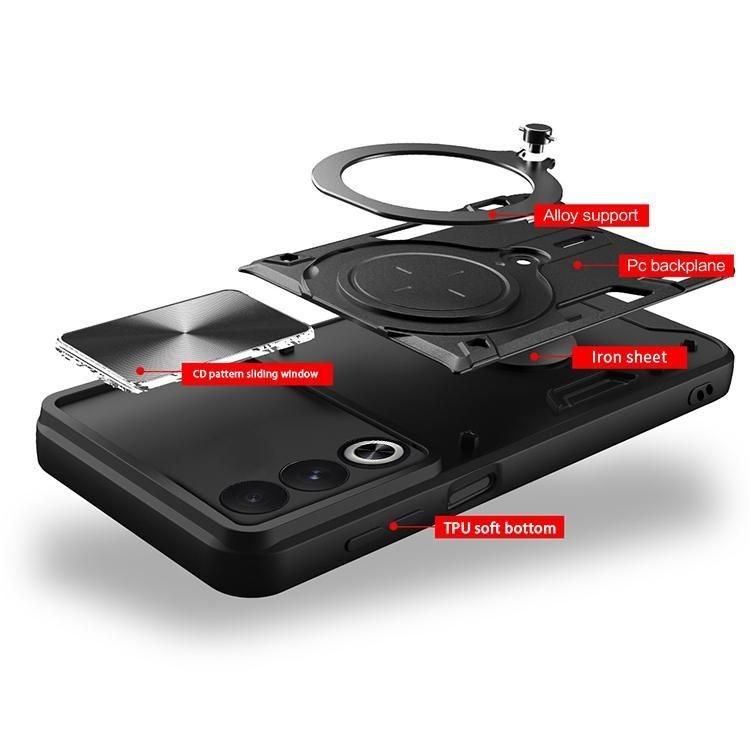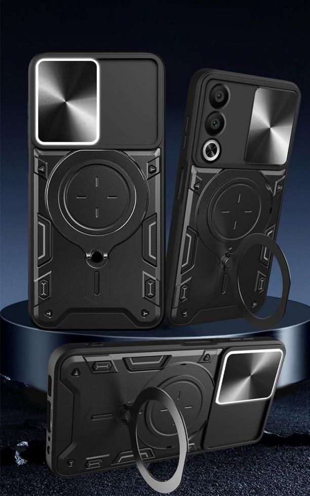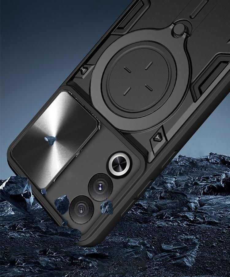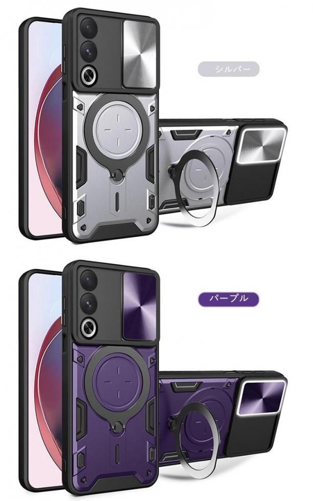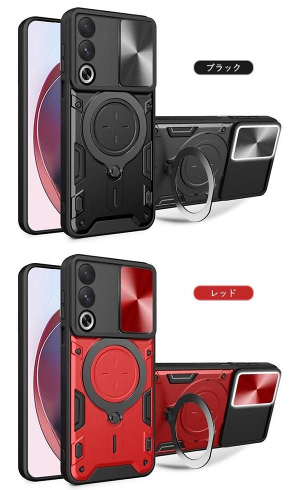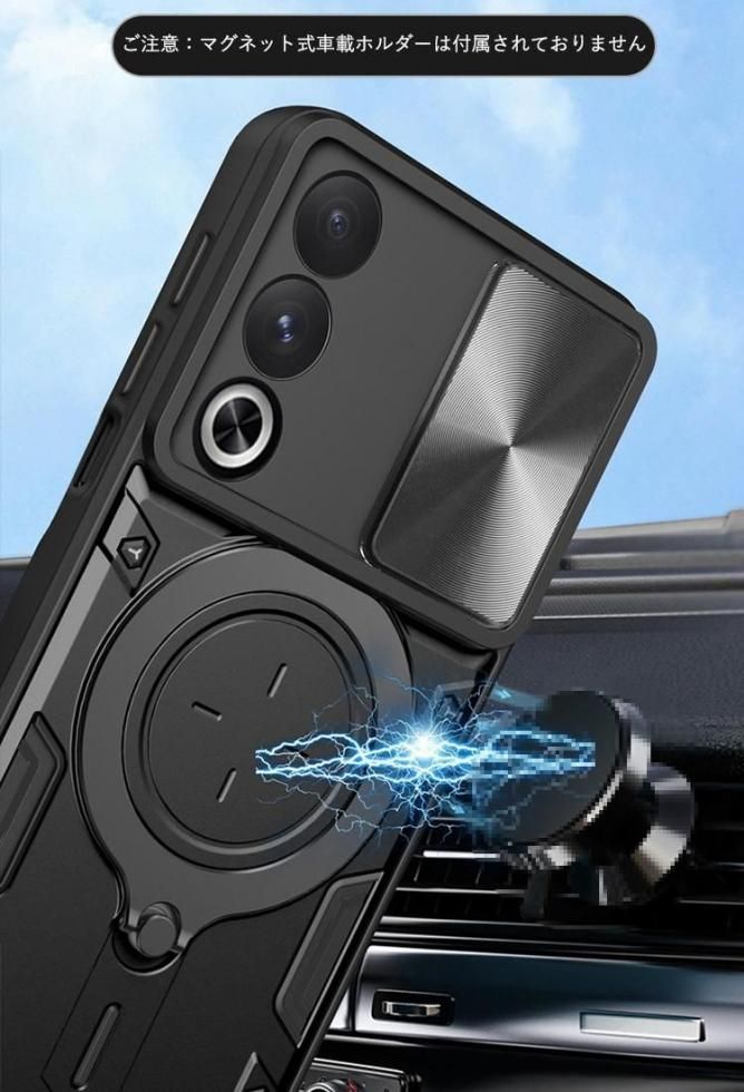 OPPO A3 5G ケース 耐衝撃 カバー スライド式カメラレンズカバー付き レンズ保護 一体型リング付き スタンド機能 マグネット式車載ホルダー対応