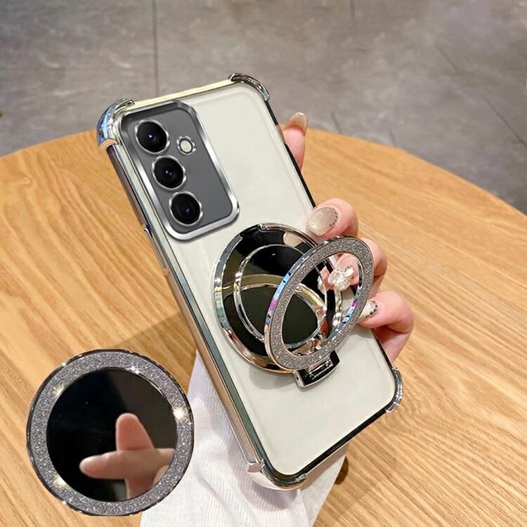 Galaxy S24FE ケース クリア カバー クリア 透明 メッキ TPU ソフトケース 分離型スマホリング付き ミラー付き スタンド機能