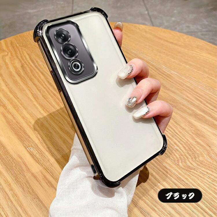 OPPO A3 5G ケース クリア カバー クリア 透明 メッキ TPU ソフトケース 角 保護 コーナーバンパー ストラップ穴 可愛い お洒落 おしゃれ