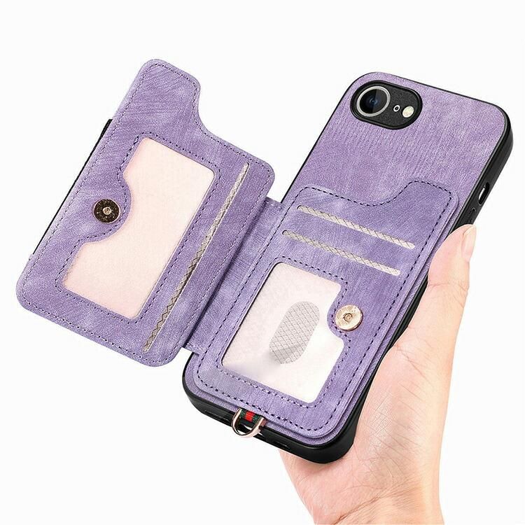 iPhone16e ケース 耐衝撃 カバー ストラップ付き PUレザー カード収納 持ち手 リング付き 片手持ちに便利なハンドストラップ付き