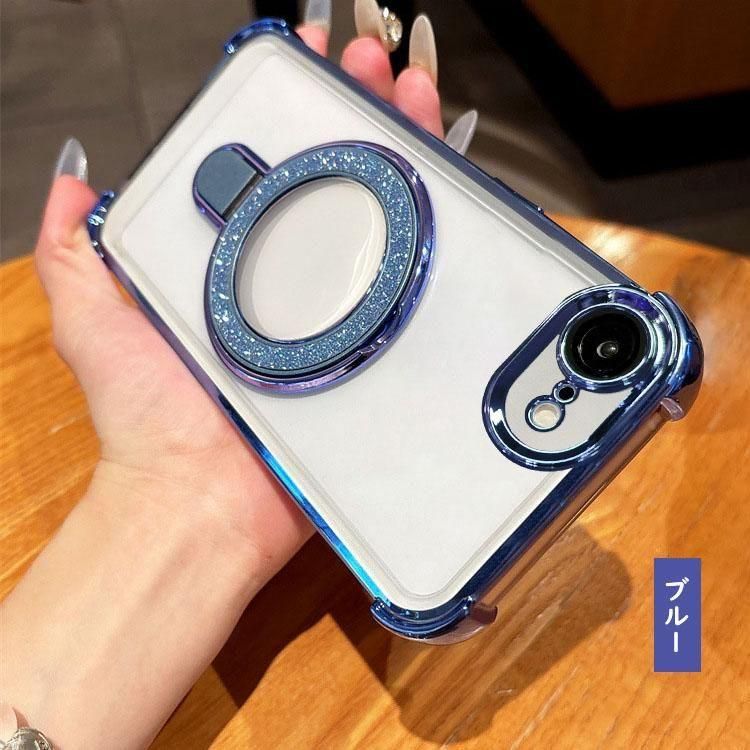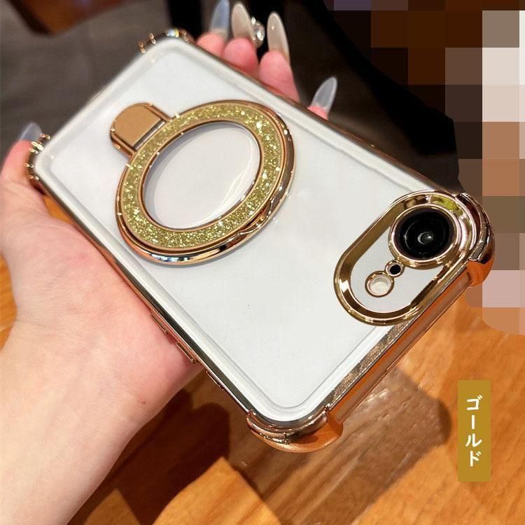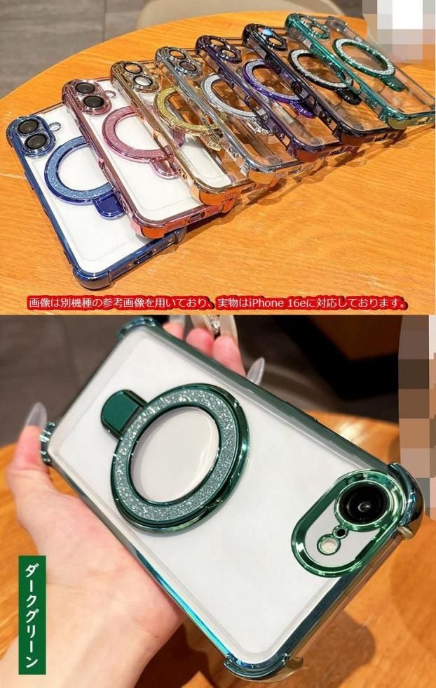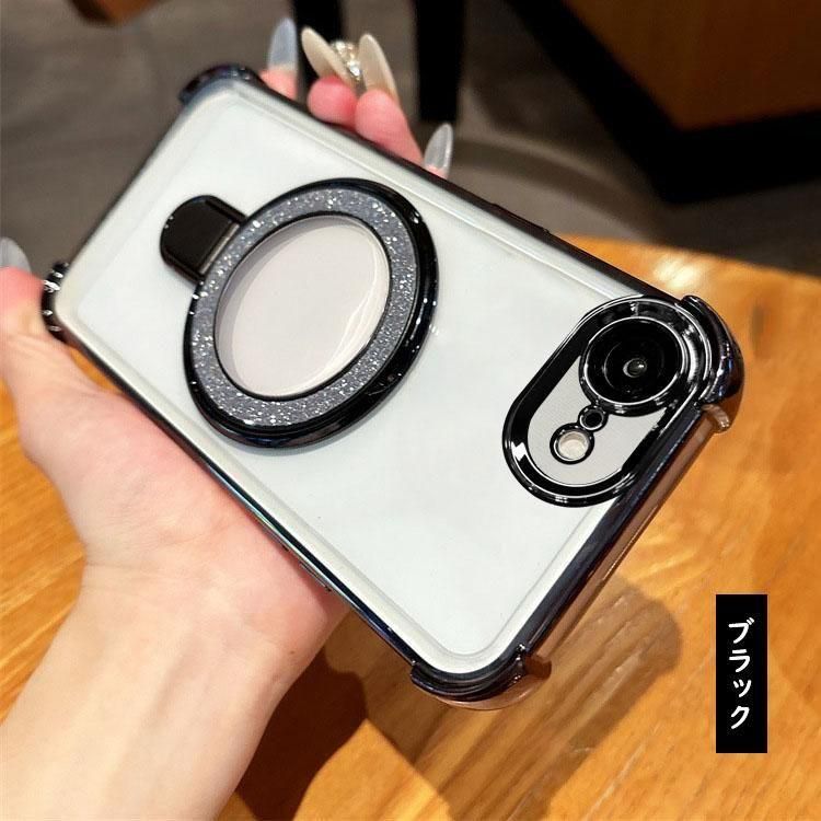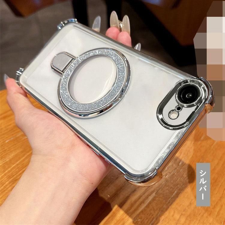 iPhone16e クリアケース カメラ保護あり カバー メッキ TPU+プラスチック 透明 分離型スマホリング付き