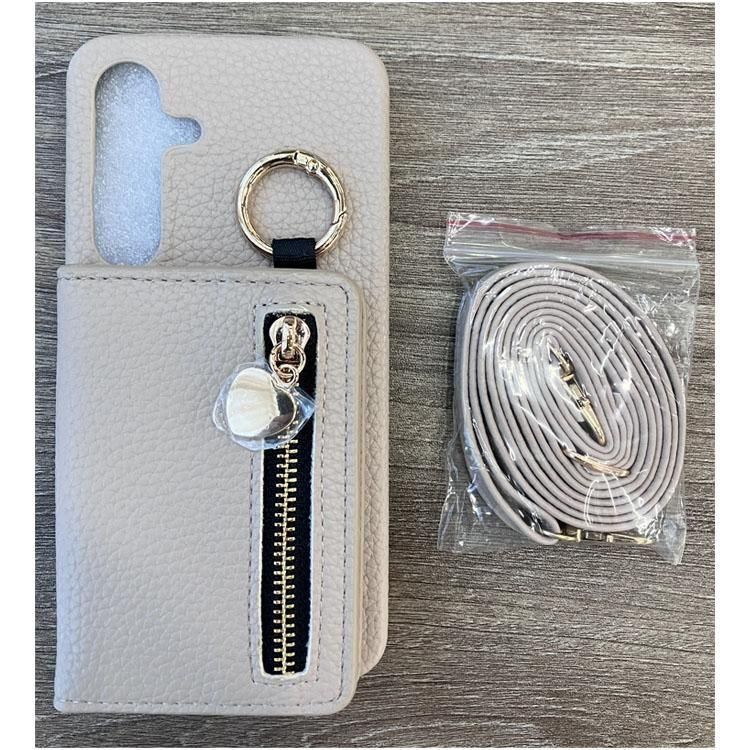 Galaxy S25 ケース S25+/S25 Ultra カバー 背面PUレザーケース 一体型リング付き 片手操作 ファスナー付きポケット カラビナリング付き カード収納 ショルダーストラ