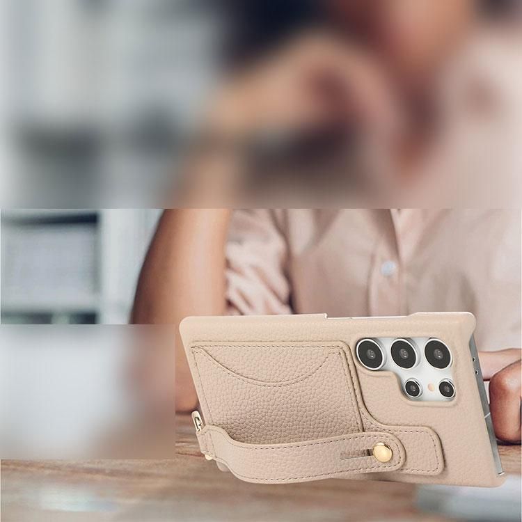Galaxy S25 ケース S25+/S25 Ultra カバー 背面PUレザーケース 一体型リング付き 片手操作 スタンド機能 カラビナリング付き カード収納 ショルダーストラップ付き