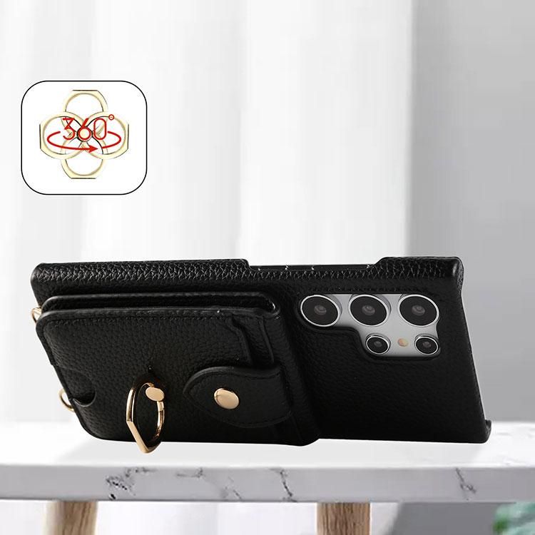 Galaxy S25 ケース S25+/S25 Ultra カバー 背面PUレザーケース 一体型リング付き 片手操作 スタンド機能 カラビナリング付き カード収納 ショルダーストラップ付き
