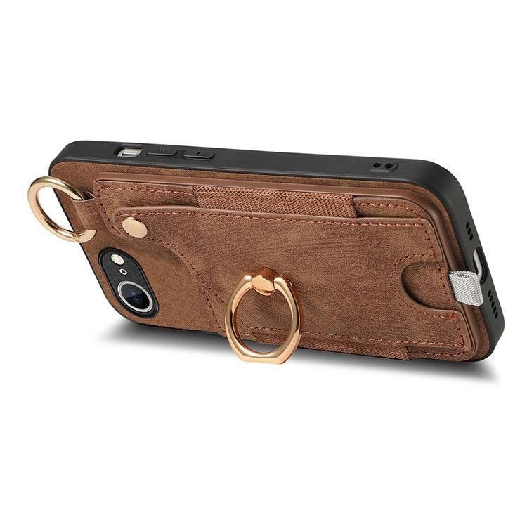 iPhone16e ケース 耐衝撃 カバー PUレザー カード収納 一体型リング付き 片手持ちに便利なハンド スタンド機能 Appleアップル アイフォン 16e おすすめ おしゃれ アイホ