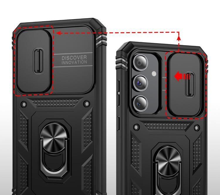 Galaxy S24FE ケース マグネット式車載ホルダ対応 スライド式カメラレンズカバー付き レンズ保護 2重構造 Samsung サムスン ギャラクシー S24 FE