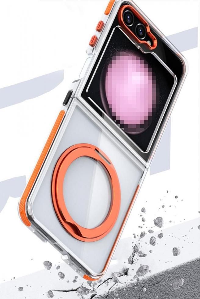 Galaxy Z Flip6 ケース クリア カバー 折りたたみ型 透明 一体型リング付き スタンド機能 Samsung サムスン ギャラクシー Z フリップ6 保護ケース