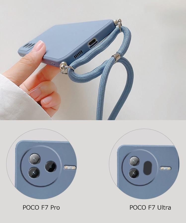 POCO F7 Pro ケース F7 Ultra スマホショルダー カバー ショルダーストラップ 肩掛けベルト付き 長さ調節可能 TPU ソフトケース ストラップ穴