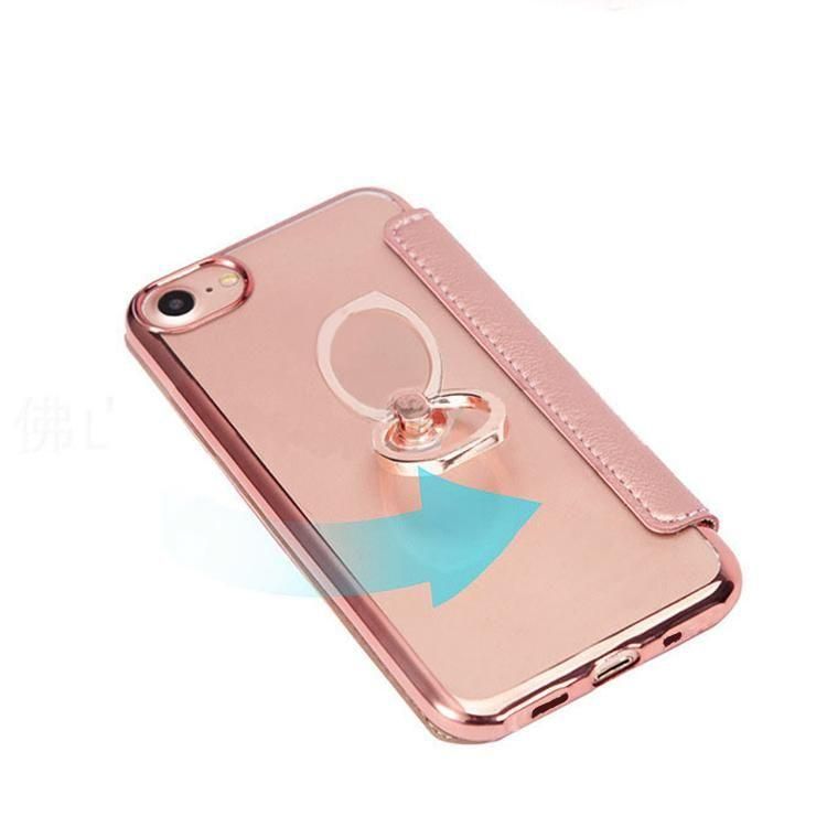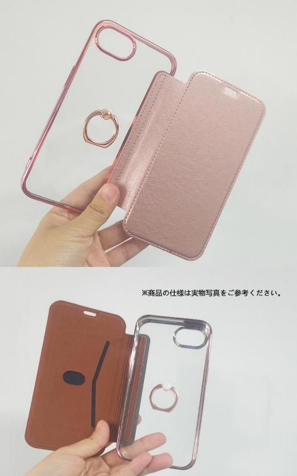 iPhone16e ケース 手帳型 カバー 手帳型PUレザーケース 背面透明 メッキ TPU ソフトケース 一体型スマホリング付き カード収納 スタンド機能 お洒落