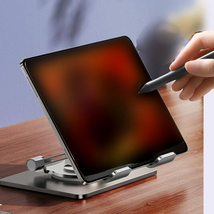 タブレットスタンド スタンド 折りたたみ スチール製 テレワーク スタンド 角度調節 360度 回転 無段階 調整 高さ調整