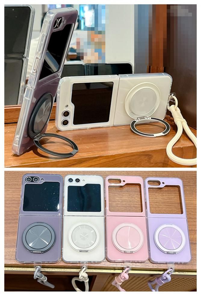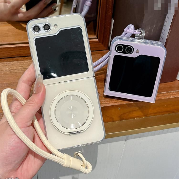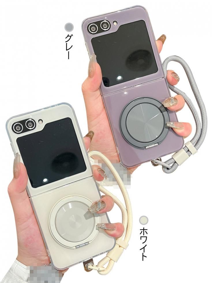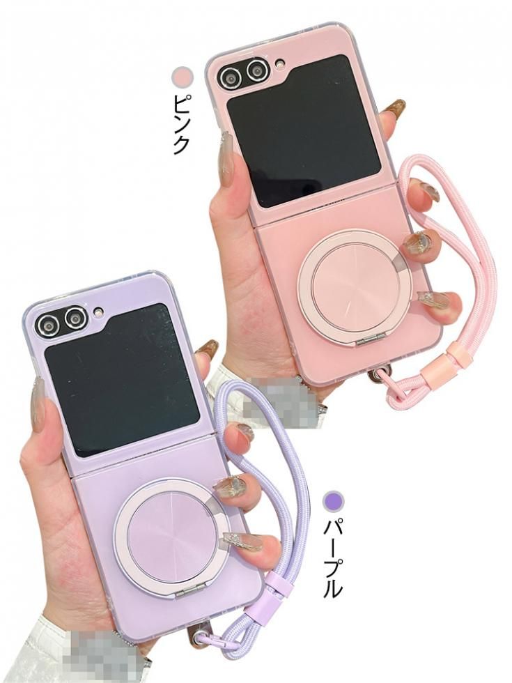 Galaxy Z Flip7 ケース カバー 折りたたみ型 プラスチック ハードケース 一体型スマホリング付き ストラップ付き Samsung サムスン ギャラクシー Z フリップ7