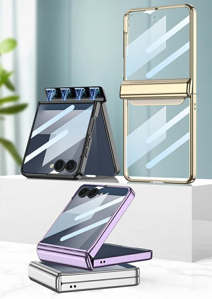 Galaxy Z Flip7 クリアケース カバー 折りたたみ型 サブディスプレイ液晶保護フィルム 強化ガラスフィルム付き メッキ クリア