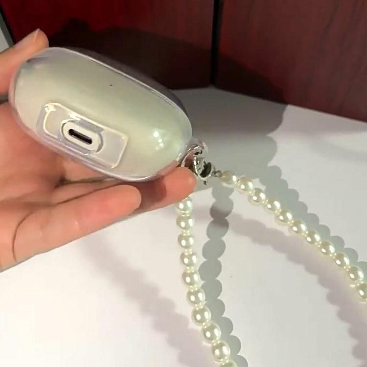 Shokz OpenDots ONE クリアケース カバー ラインストーン 真珠風ストラップ付き クリア 透明 TPU シンプル オープンドッツ ワン