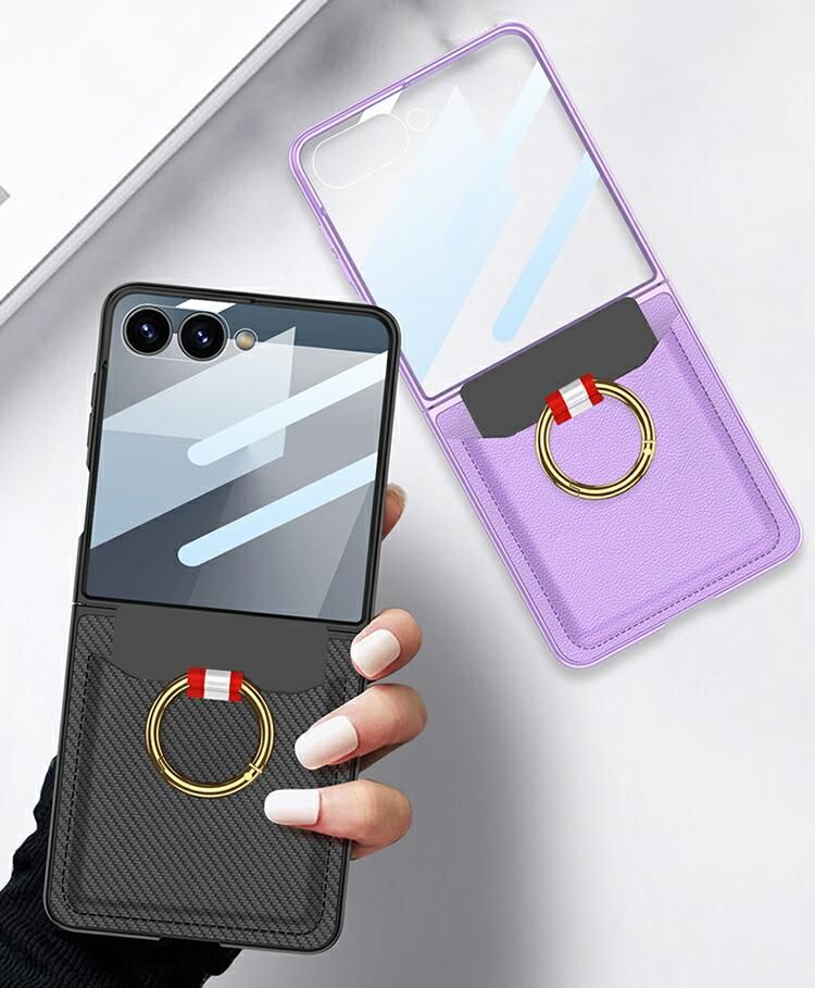Galaxy Z Flip7 クリアケース カバー 折りたたみ型 サブディスプレイ液晶保護フィルム 強化ガラスフィルム付き カード収納