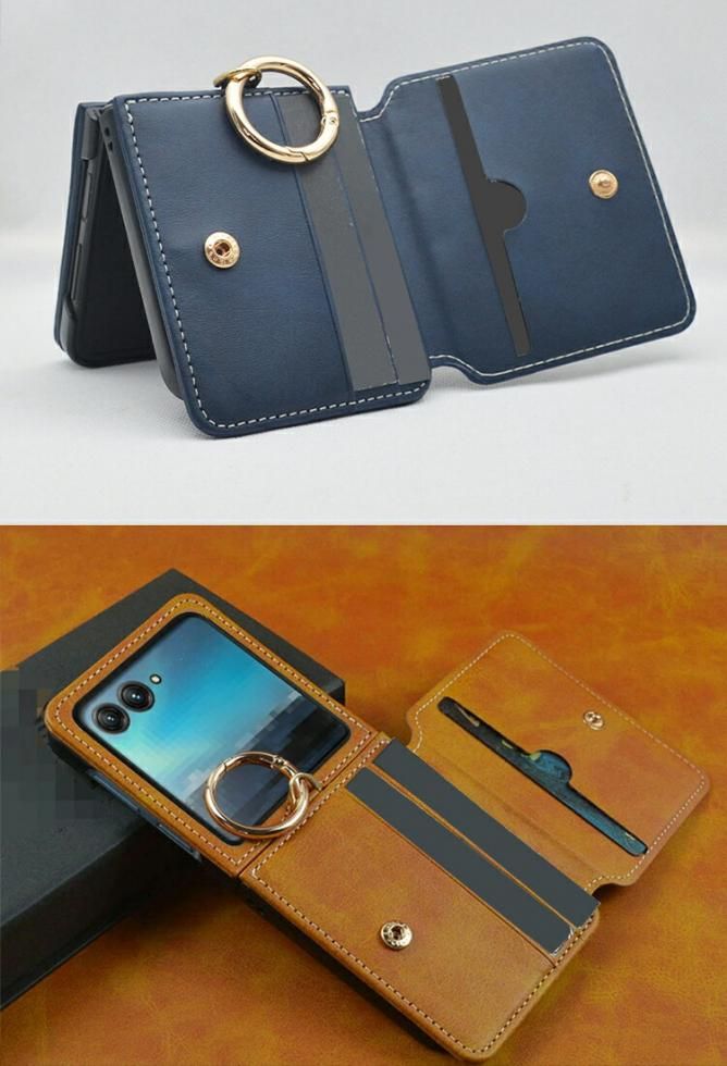 Razr 60/60s/60d ケース Razr60 Ultra 耐衝撃 カバー PUレザー 折りたたみ型 一体型リング付き カード収納付き スタンド機能 ストラップ穴 お洒落