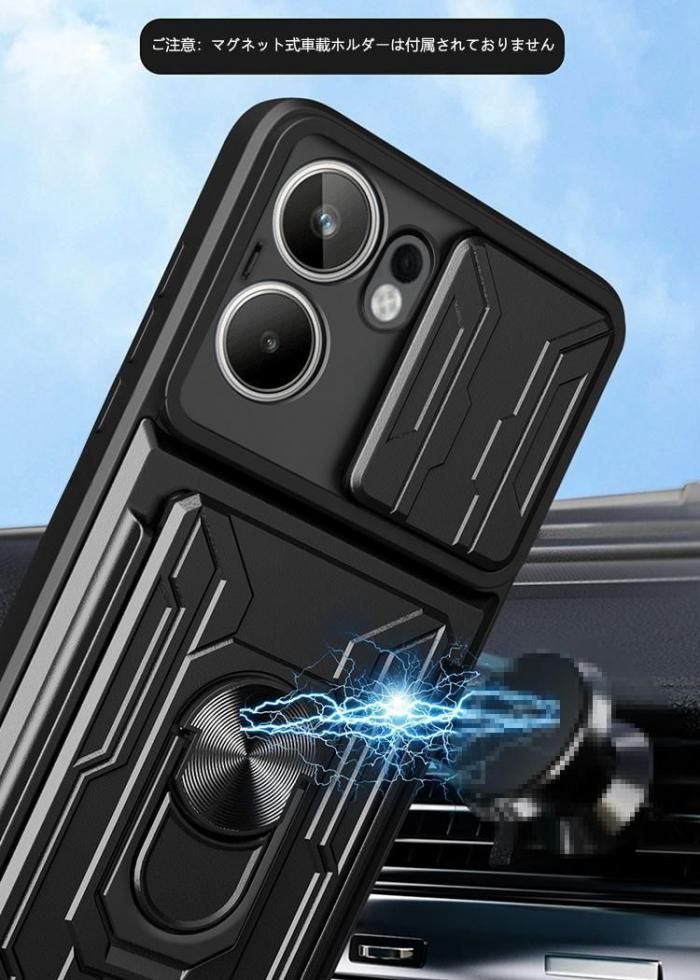 OPPO Reno13 A ケース reno 13a 耐衝撃 カバー マグネット式車載ホルダ対応 スライド式カメラレンズカバー付き レンズ保護 カード収納 リング付き
