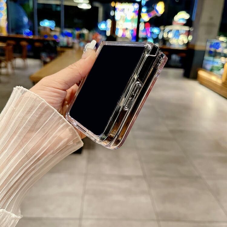 Galaxy Z Flip7 クリアケース /カバー 折りたたみ型 クリア 透明 Qi充電 ワイヤレス充電 対応 一体型リング付き スタンド機能 ストラップ穴