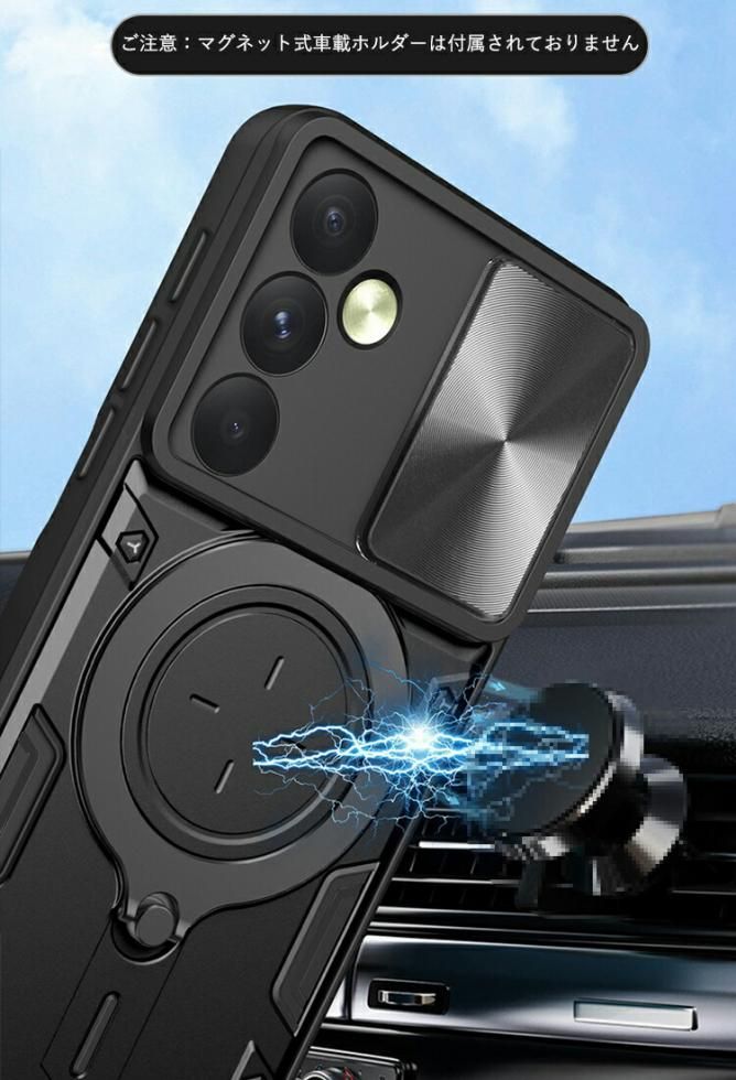 Galaxy A36 5G ケース 耐衝撃 カバーマグネット式車載ホルダー対応 スライド式カメラレンズカバー付き レンズ保護 一体型リング付き スタンド機能