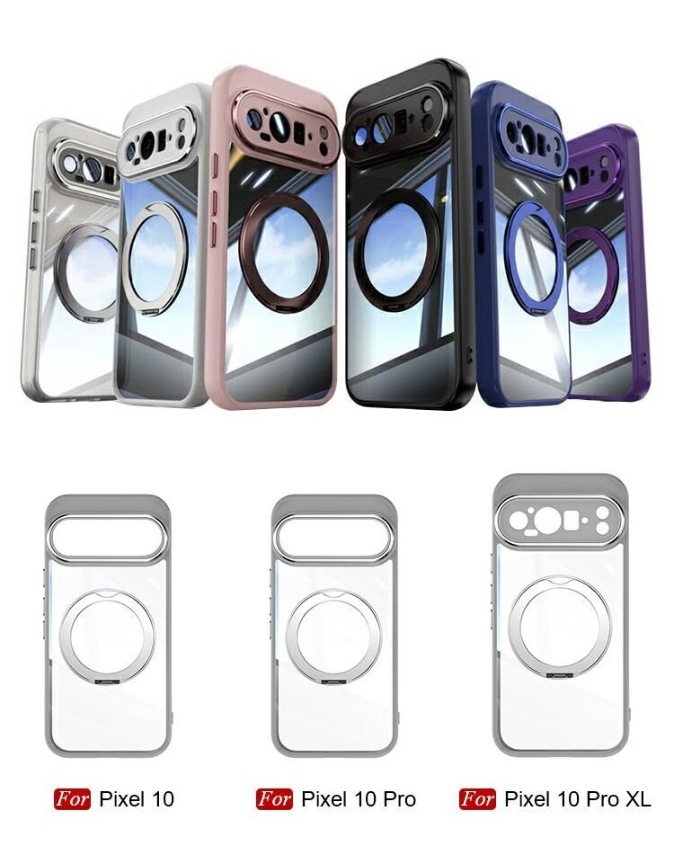 Pixel10 クリアケース Pixel 10 Pro / Pixel 10 Pro XL 耐衝撃 カバー クリア 透明 一体型リング付き スタンド機能 ストラップホール付き