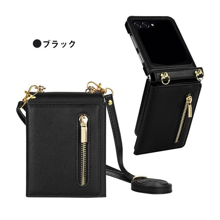 Galaxy Z Flip7 スマホショルダー ケース 折りたたみ型 PUレザー ケース 肩掛けベルト付き Samsung サムスン ギャラクシー Z フリップ7