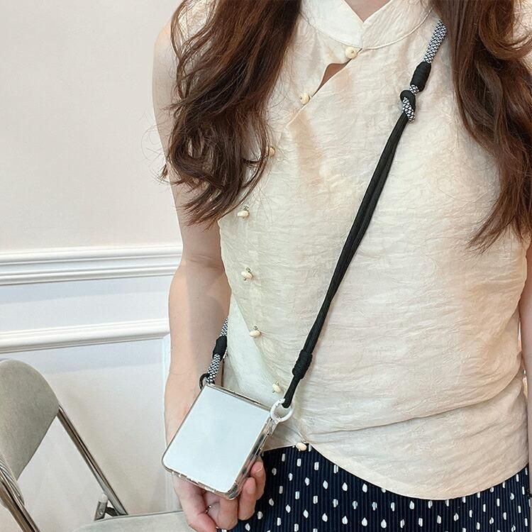 Galaxy Z Flip7 クリア ケース スマホショルダー カバー 折りたたみ型 クリア 透明 プラスチック ハードケース ショルダーストラップ 肩掛けベルト付き