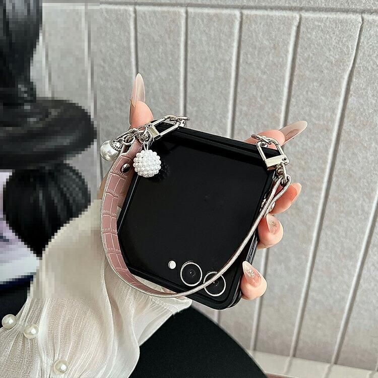 Galaxy Z Flip7 ケース /カバー 折りたたみ型 PUレザー クロコダイル調 持ち手 ベルト ハンドストラップ 落下防止ベルト 片手操作 取っ手 お洒落