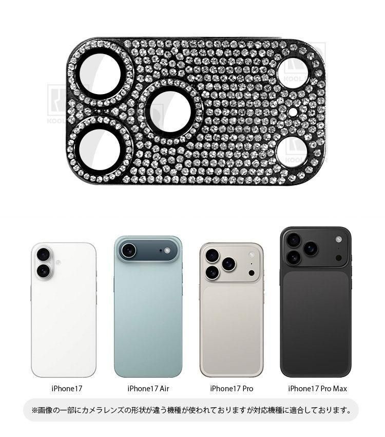 iPhone17 カメラレンズカバー 17 Air/17 Pro/17 Pro Max アルミ + 強化ガラス ラインストーン