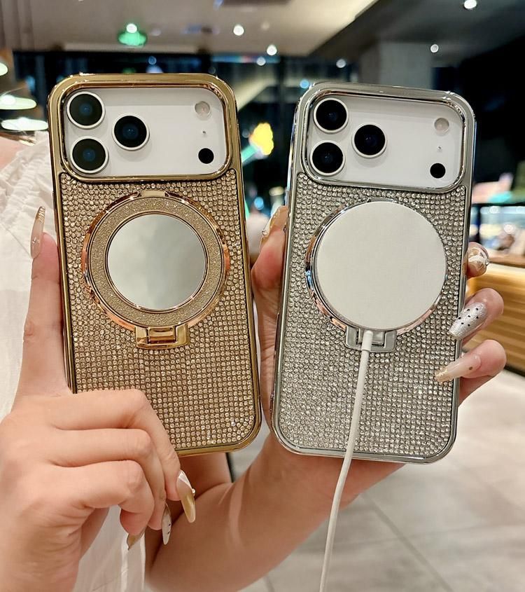 iPhone17 ケース 17 Air/17 Pro/17 Pro Max カバー 透明 メッキ ラインストーン ミラー付き スタンド機能 可愛い Apple アイフォン17