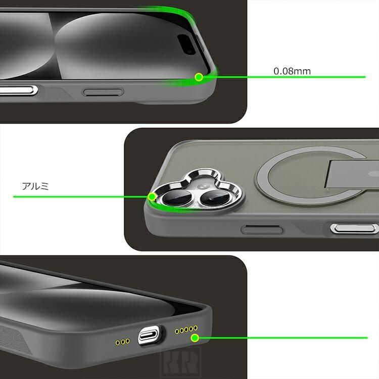iPhone17 耐衝撃ケース / カバー 17 Air/17 Pro/17 Pro Max 背面半透明 マット Qi充電 ワイヤレス充電 対応 スタンド機能 滑り止め