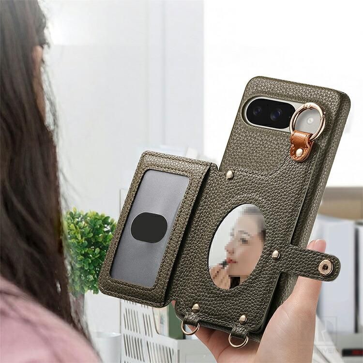 Pixel10 スマホショルダー ケース Pixel 10 Pro / Pixel 10 Pro XL カバー ショルダーストラップ 肩掛けベルト付き カード収納 ミラー付き リング付き