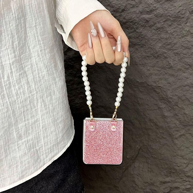 Galaxy Z Flip7 耐衝撃 ケース /カバー 折りたたみ型 メッキ ハードケース 持ち手 ベルト ハンドストラップ 落下防止ベルト 片手操作 取っ手
