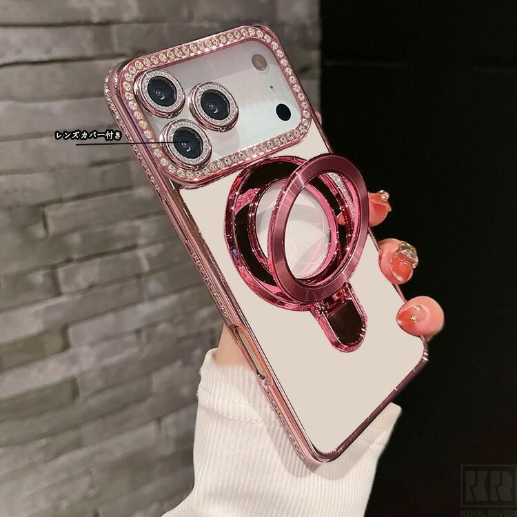 iPhone17 ケース レンズカバー付き 17 Air/17 Pro/17 Pro Max カバー クリア Qi充電 ワイヤレス充電 対応 ラインストーン ソフトケース リング付き