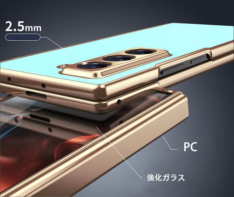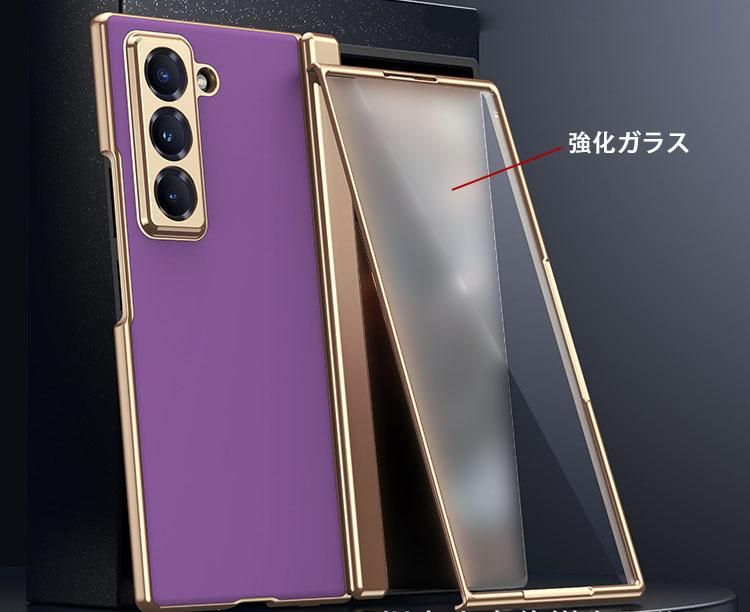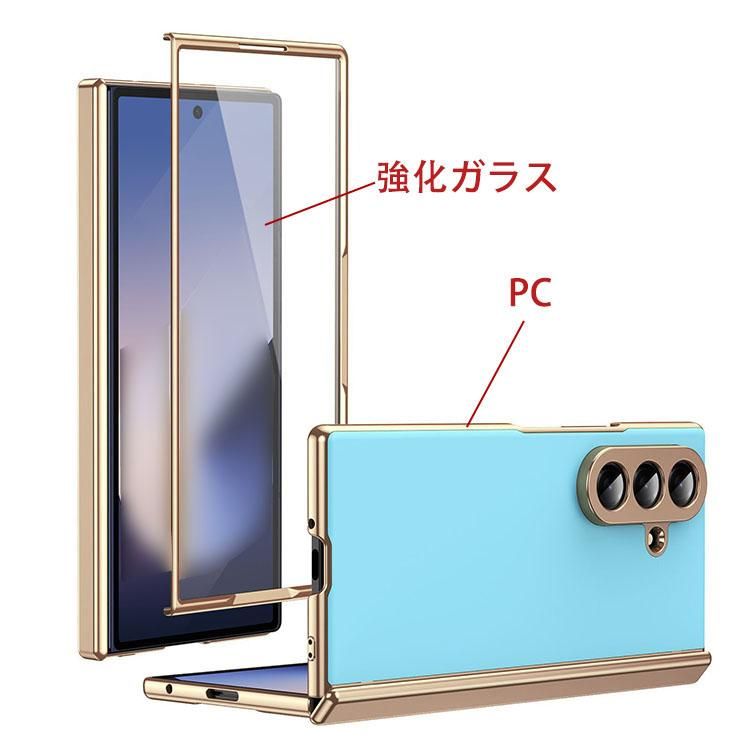 Galaxy Z Fold7 ケース カバー 折りたたみ型 メッキ 強化ガラスフィルム付き 強化ガラス+プラスチック 前面強化ガラス