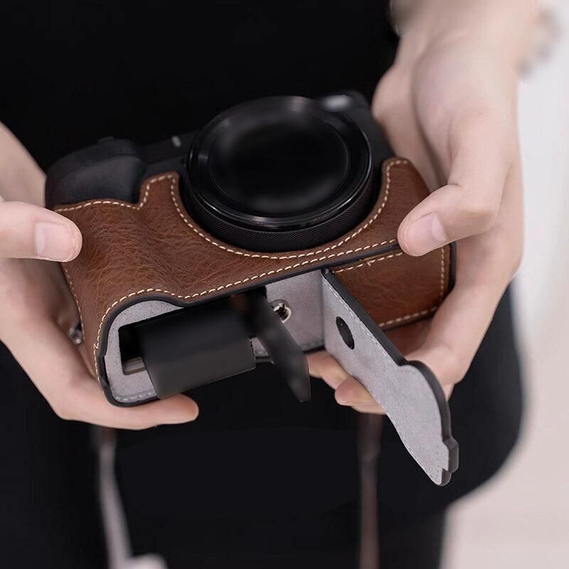 PowerShot V1 ケース PUレザーハーフケース ハーフカバー 保護ケース シンプル 傷つき防止 カバー カメラ保護 衝撃吸収-SG-