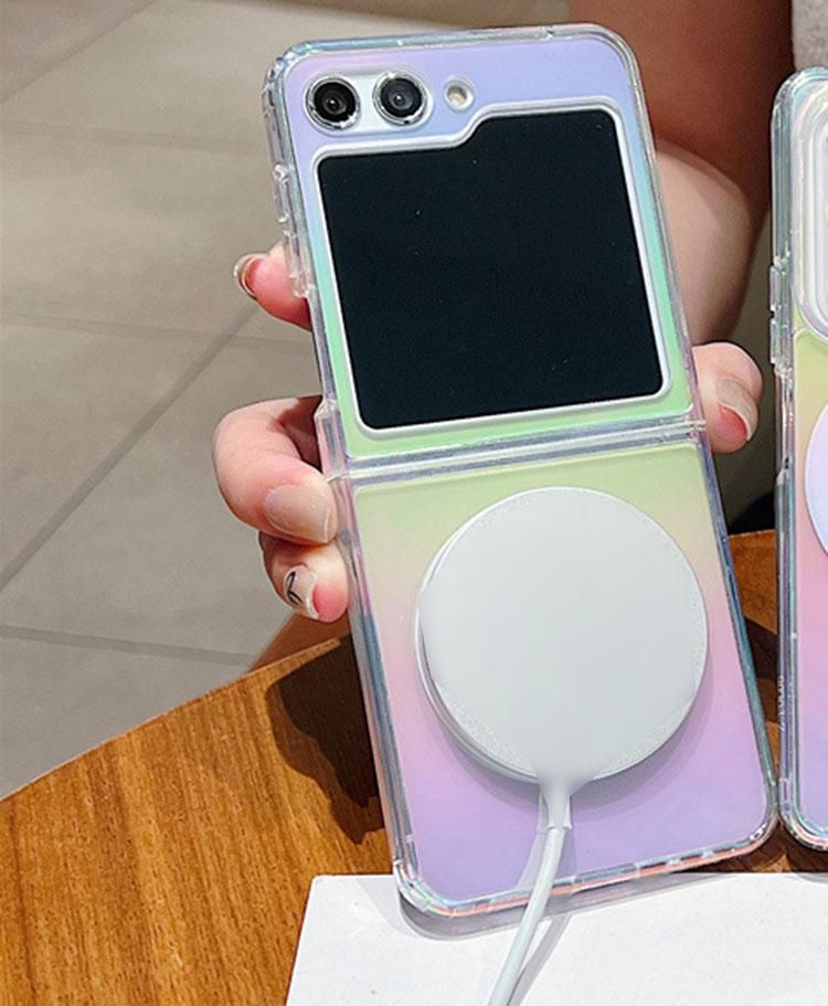 Galaxy Z Flip7 クリア ケース カバー 折りたたみ型 半透明 グラデーション 角 保護 Qi充電 ワイヤレス充電 対応