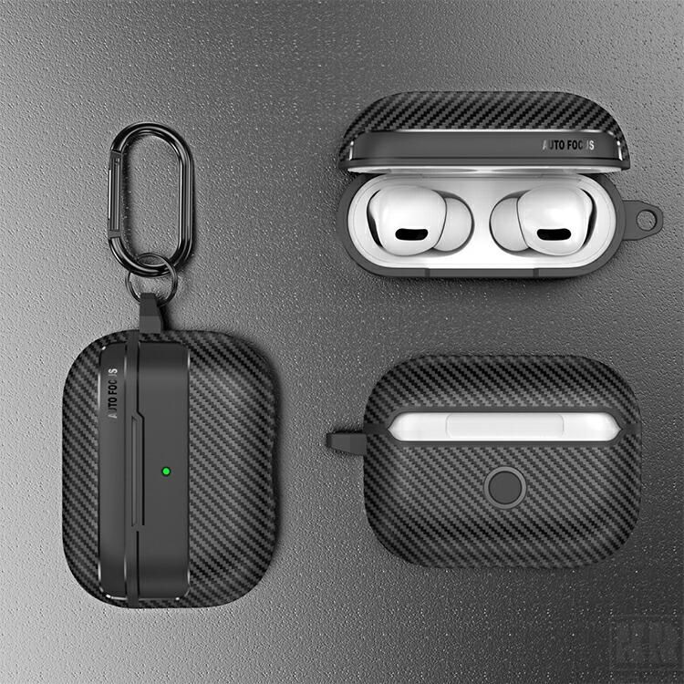AirPods Pro 3 耐衝撃 ケース 第3世代 カバー カーボン調 カラビナ付き TPU ソフトケース スタンド機能あり シンプル 保護カバー おすすめ