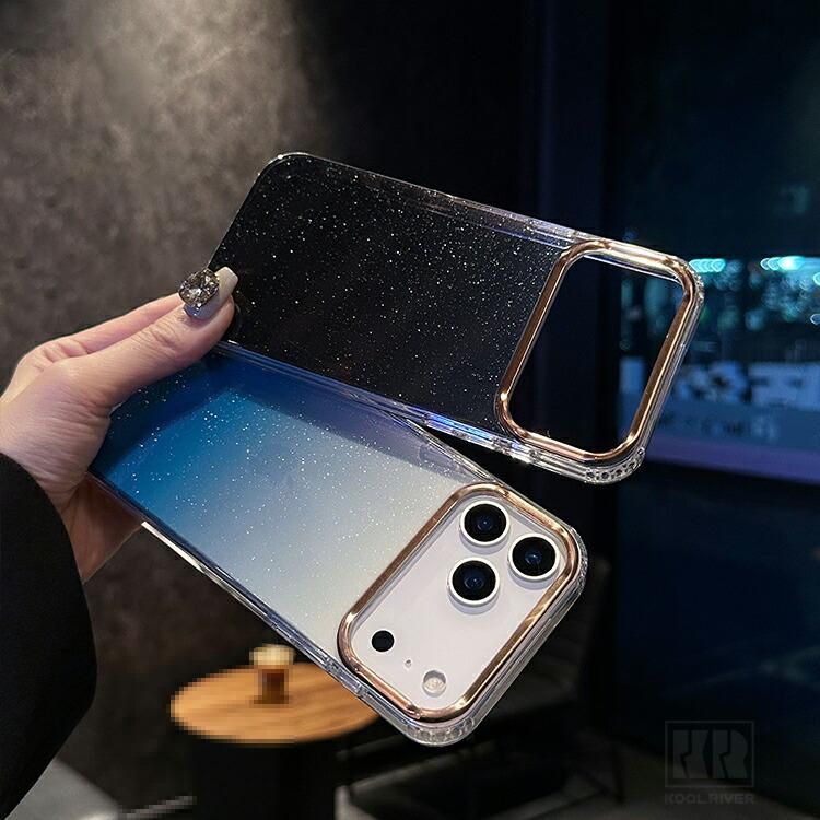 iPhone17 耐衝撃ケース / カバー 17 Air/17 Pro/17 Pro Max 背面半透明 グラデーション 角 保護 コーナーバンパー ストラップ穴 グリッター きらきら