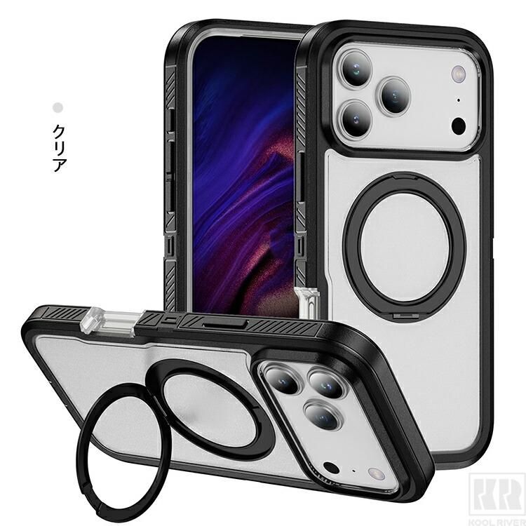iPhone17 耐衝撃 ケース / カバー 17 Air/17 Pro/17 Pro Max 半透明 マット Qi充電 ワイヤレス充電 対応 一体型リング付き スタンド機能 滑り止め