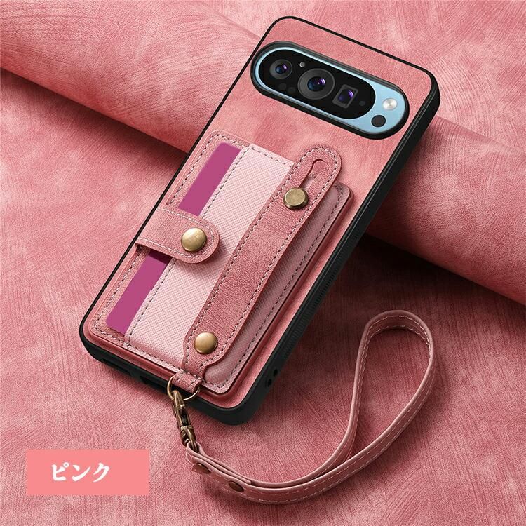 Pixel10 ケース Pixel 10 Pro / Pixel 10 Pro XL 耐衝撃 カバー PUレザー カード収納 持ち手 リング付き 片手持ちに便利なハンドストラップ付き