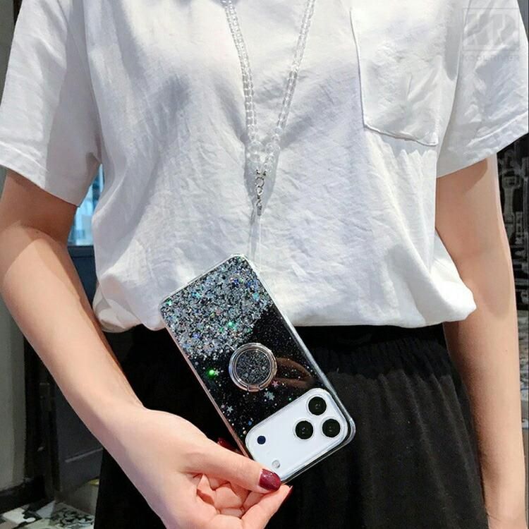 POCO F8 Pro /F8 Ultra スマホショルダー スマホ 背面 カードケース 粘着タイプ 落下防止 ショルダー 肩掛け チェーン ベルト付き 一体型リング付き