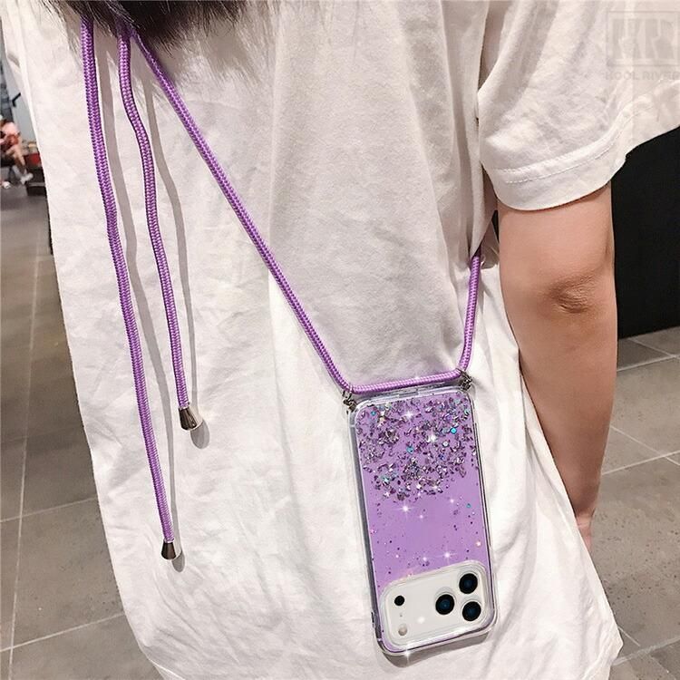iPhone17 ケース スマホショルダー Air/17 Pro/17 Pro Max カバー クリア 透明 きらきら レディース ショルダーストラップ 肩掛けベルト付き 長さ調節可能
