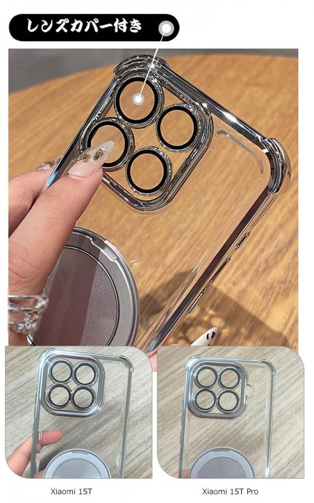 Xiaomi 15T ケース クリア 15T Pro 耐衝撃 カバー レンズカバー付き クリア 透明 メッキ TPU ソフトケース 分離型スマホリング付き スタンド機能 ストラップ穴